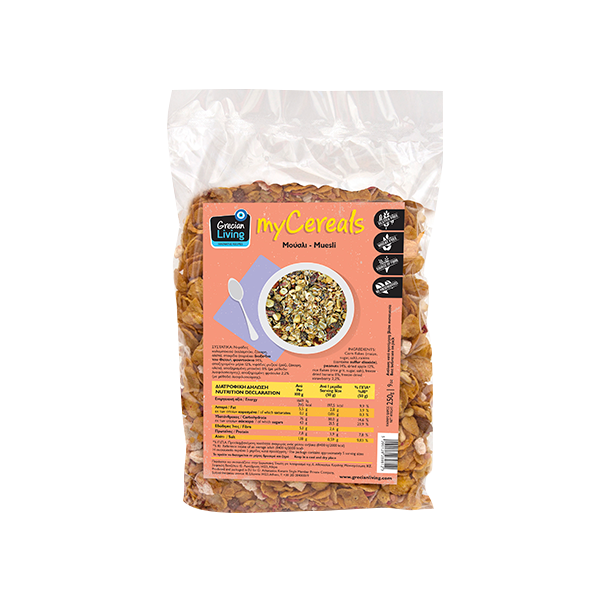Συνδυασμός νιφάδων καλαμποκιού, αποξηραμένων φρούτων (μήλο, μπανάνα, φράουλα, σταφίδα) και φυστικιού. Ιδανικός τρόπος για το ξεκίνημα της ημέρας σας μαζί με γαλακτοκομικά ή άλλα τρόφιμα της αρεσκείας σας καθώς και σαν σνακ στη δουλειά και στο σχολείο (για παράδειγμα συνδυασμένο με μέλι και κανέλλα).