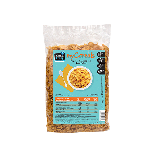 Η κλασική αγαπημένη γεύση των ξεροψημένων νιφάδων καλαμποκιού. Προσφέρουν ενέργεια, υδατάνθρακες, πρωτεΐνη, φυτικές ίνες και άλλα θρεπτικά συστατικά στον οργανισμό. Ιδανικά για το ξεκίνημα της ημέρας σας μαζί με γαλακτοκομικά ή άλλα τρόφιμα της αρεσκείας σας καθώς και για ένα απολαυστικό και υγιεινό σνακ στη δουλειά και στο σχολείο (για παράδειγμα συνδυασμένο με ξηρούς καρπούς, μέλι και κανέλλα). Διατίθεται και σε ατομική συσκευασία.